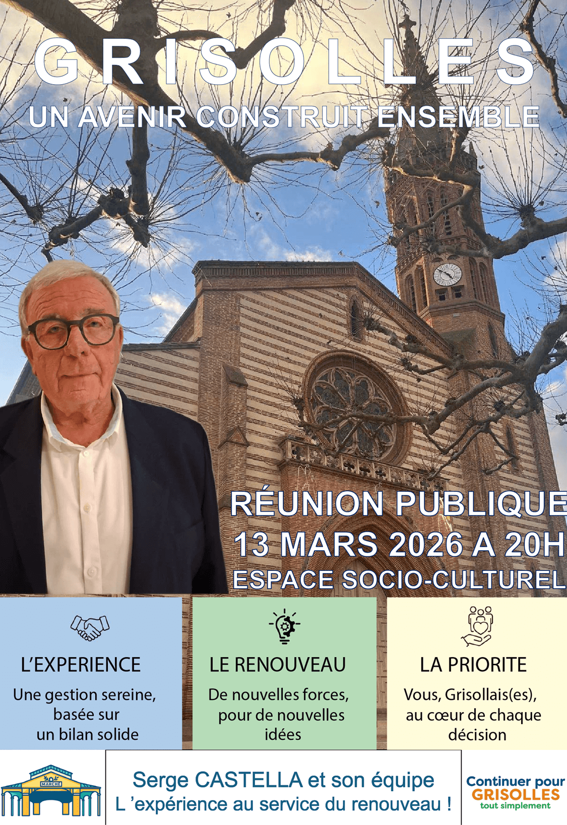 Autour de Serge Castella, maire sortant, une majorité d’adjoints reconduits, des conseillers municipaux investis, et de nouvelles personnalités motivées par un même objectif : Faire avancer Grisolles, ensemble !